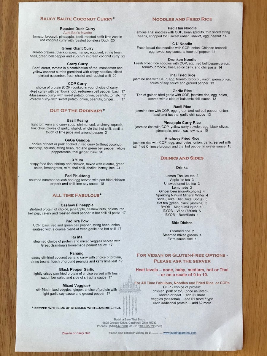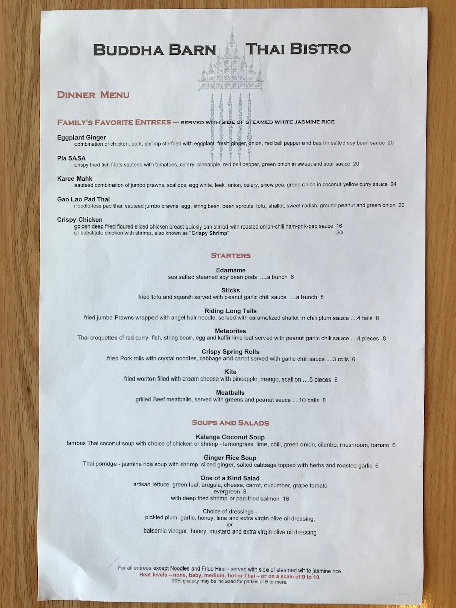The menu at Buddha Barn Thai offers a thoughtful selection of comforting and flavorful dishes that reflect the heart of traditional Thai cuisine. It’s a menu designed for those seeking casual, satisfying meals—from savory coconut curries and wok-fried classics to fresh, aromatic soups and vibrant salads.